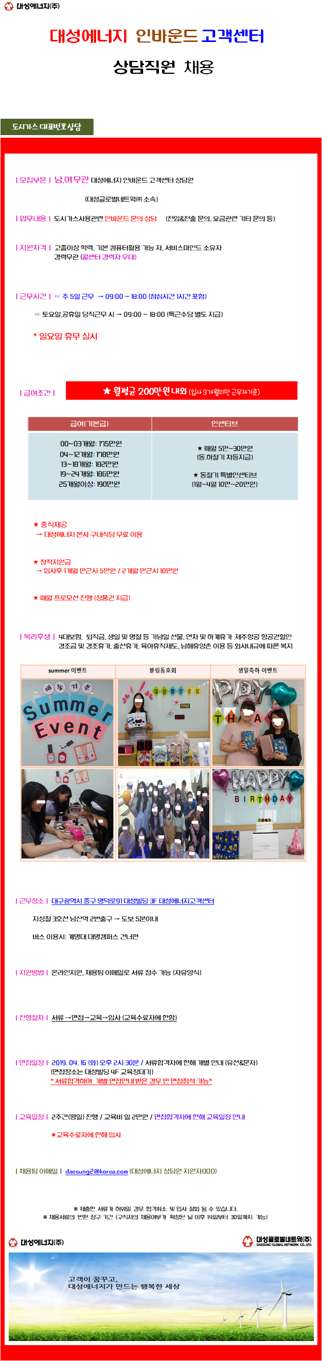 | 제목 | 대성에너지 인바운드 채용 안내 | ||||
