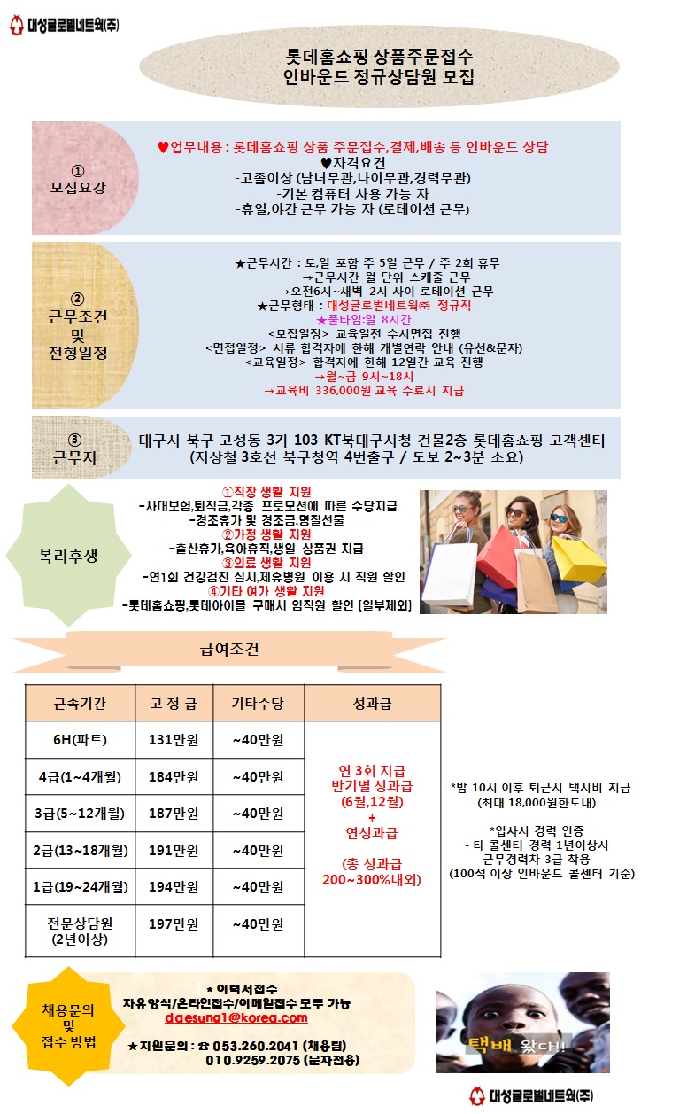 | 제목 | ★롯데홈쇼핑 주문,접수 순수인바운드 상담원 모집★ | ||||