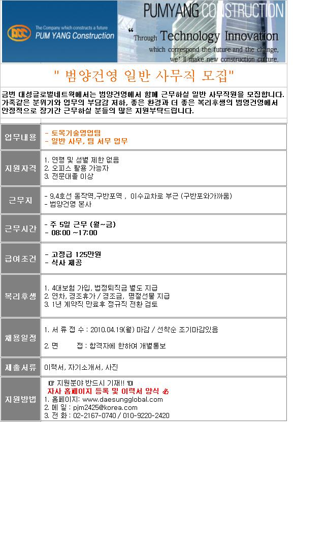 | 제목 | [범양건영]일반 사무직 모집 | ||||