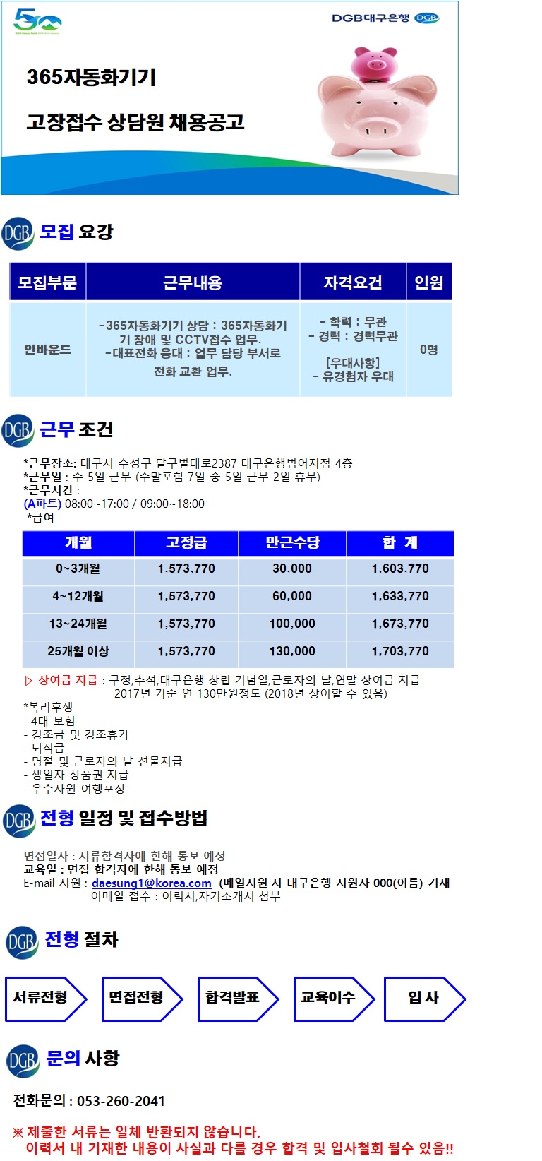 | 모집분야 | 대구은행 | 업직종 | 해피콜 | 마감일 | 2018-06-30 |