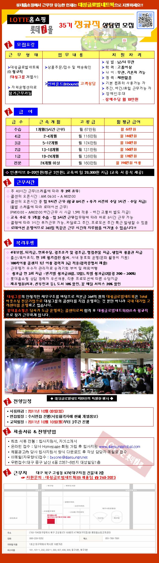 | 제목 | ★롯데홈쇼핑 정규직 35기 인바운드 상담원 모집★ | ||||
