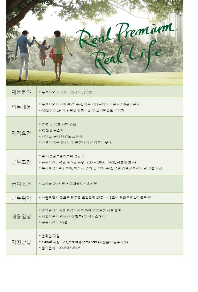 | 제목 | 푸르지오 고객센터 정규상담원 모집 | ||||