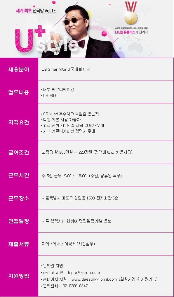 | 제목 | LG Smart World 국내 매니저 모집 | ||||