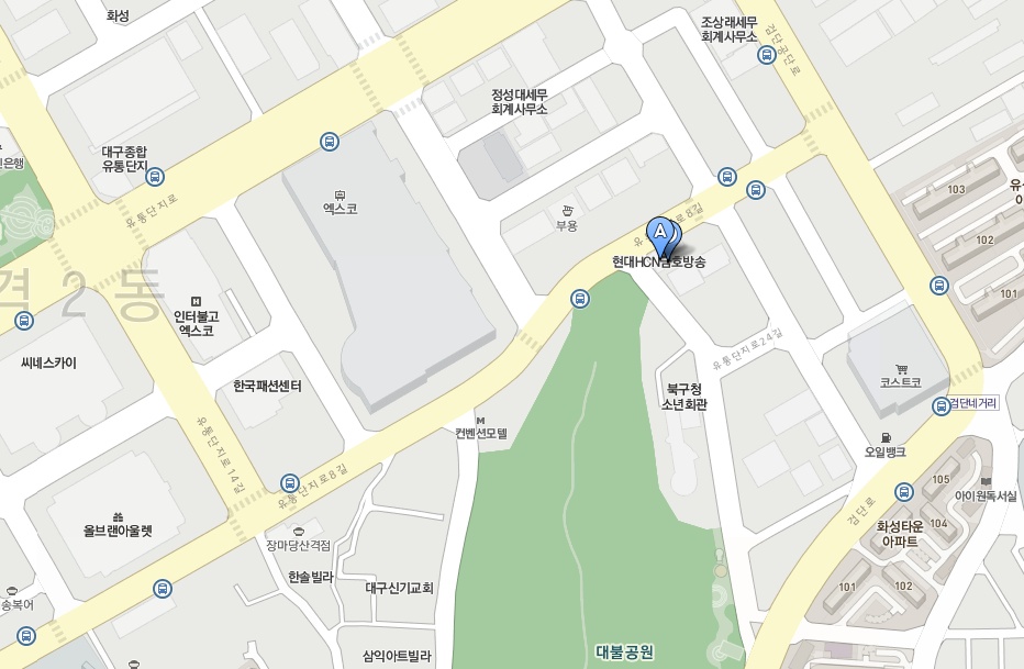 : 대구광역시 북구 산격동 1729번지 HCN 금호방송 1층 |