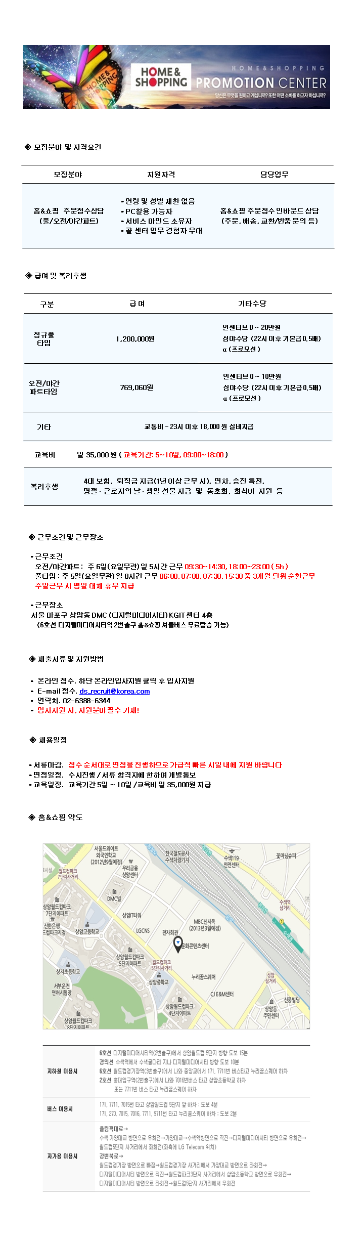 | 제목 | (풀/파트) 홈&쇼핑 고객상담원 모집 | ||||