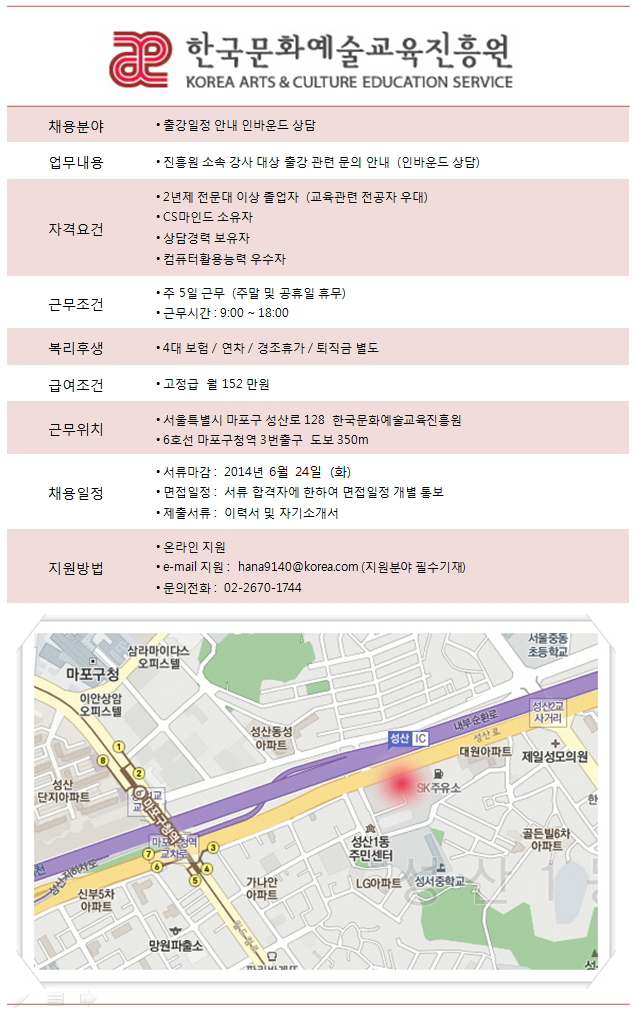 | 제목 | ▣[공공기관]한국문화예술교육진흥원 소속 교사 대상 인바운드 상담 | ||||