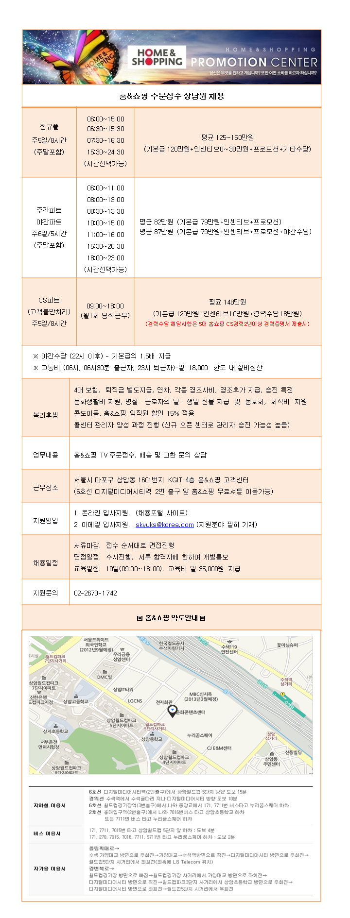 | 제목 | (오전파트) 홈&쇼핑 상담사 모집 | ||||