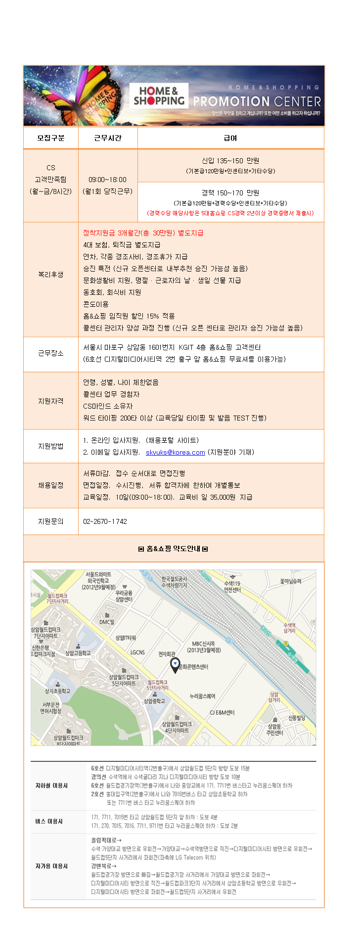 | 제목 | ▣[정규직] 홈&쇼핑 CS고객만족팀 상담원 모집 | ||||