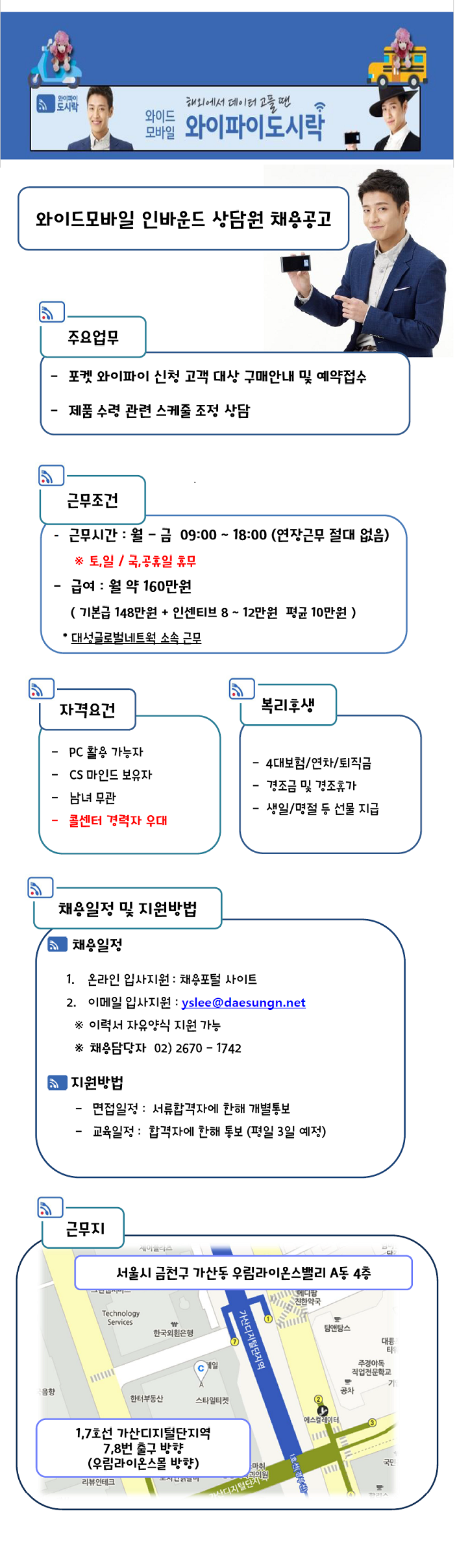 | 제목 | 와이드모바일 인바운드 상담원 채용 | ||||