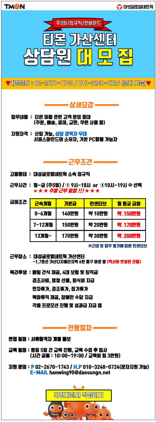| 제목 | 티켓몬스터 상담원 대규모 채용 | ||||