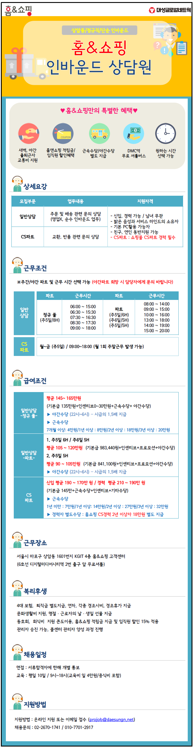 | 제목 | 홈앤쇼핑 주간/CS파트 | ||||