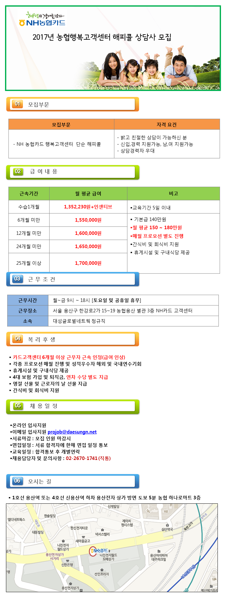 | 제목 | 농협행복고객센터 해피콜 상담원모집 | ||||