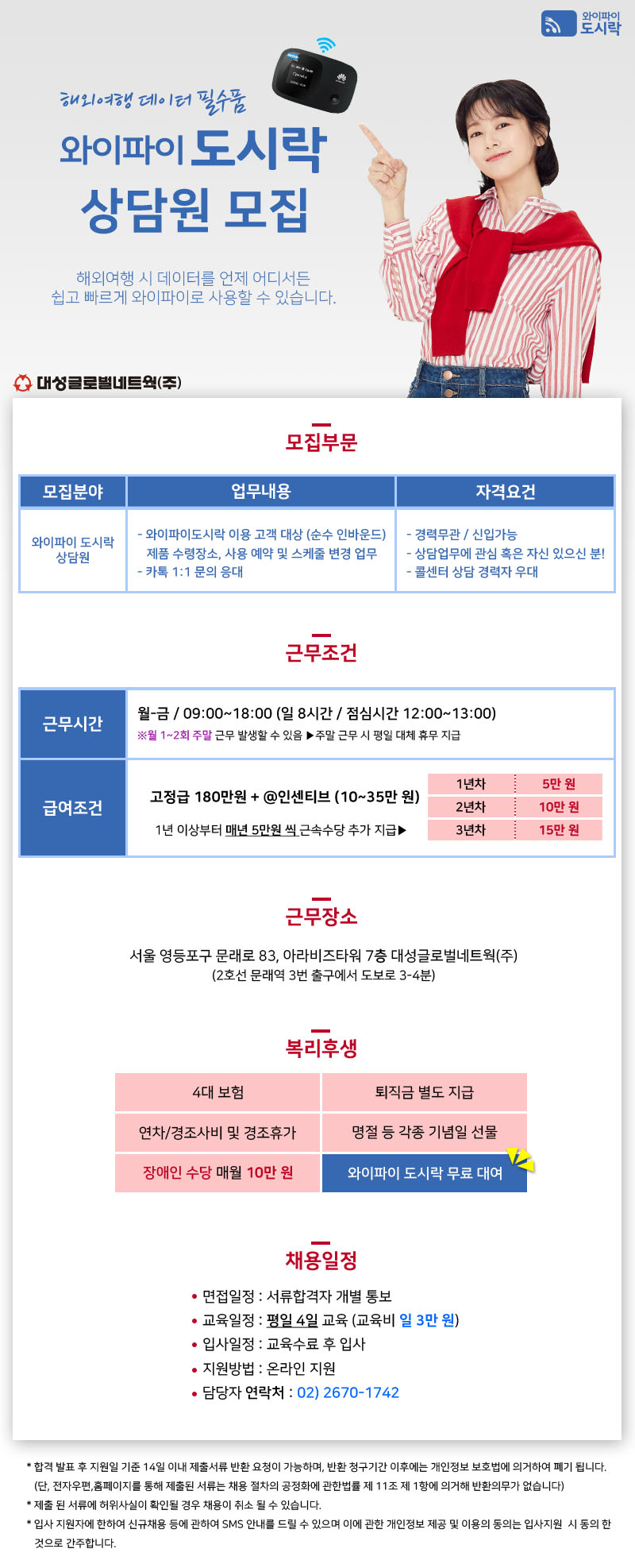 | 모집분야 | 상담원 | 업직종 | 고객상담 | 마감일 | 2019-05-31 |