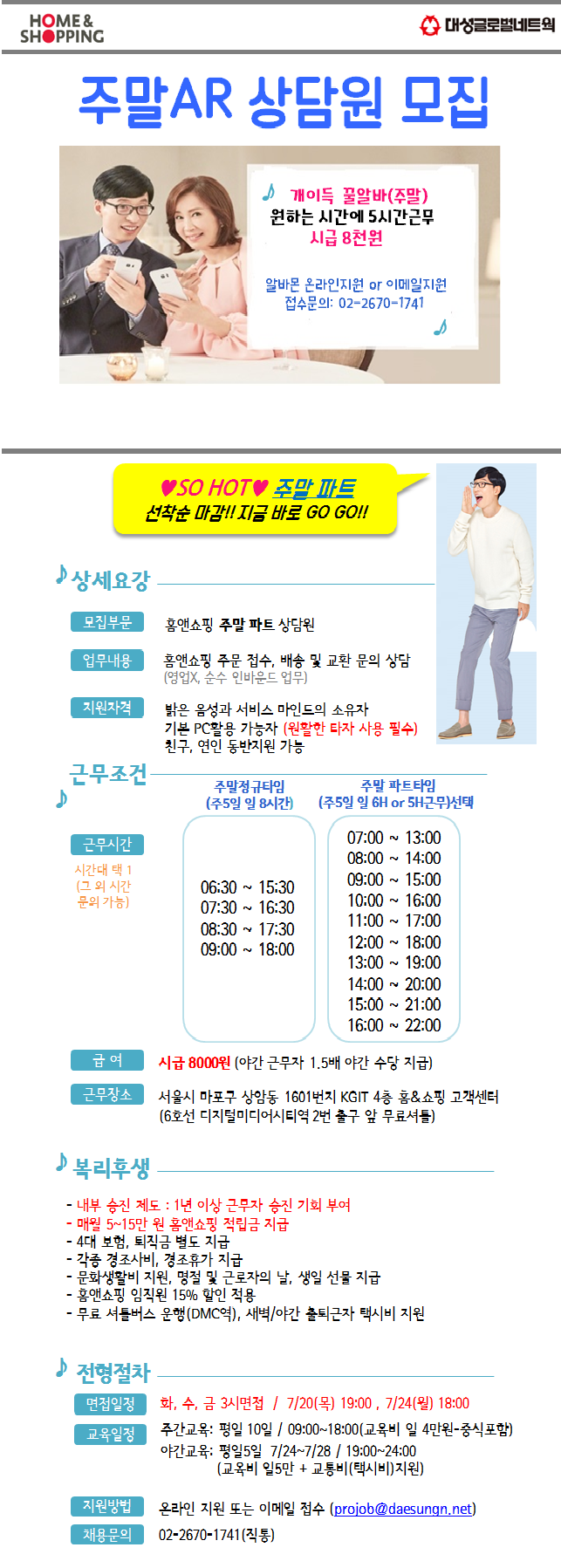 | 제목 | 홈앤쇼핑 주말파트 상담원채용 | ||||